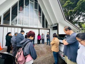 臨近上午11點時,剛巧遇到大風大雨,大家笑說這也是小小挑戰的一部分。於是我們趕緊前往吃中午飯,飯枱上滿是溫馨的分享、彼此關心還有9菜一個飯美味無窮,感謝天父上帝賜予豐富的食物!在主裡一家人的愛在此刻顯得格外真摯。